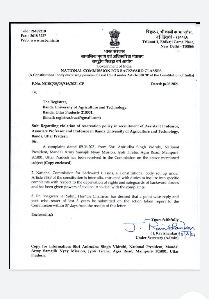 राष्ट्रीय पिछड़ा वर्ग आयोग NCBC ने विश्वविद्यालय प्रशासन को भेजा नोटिस, 7 दिन में मांगा जवाब