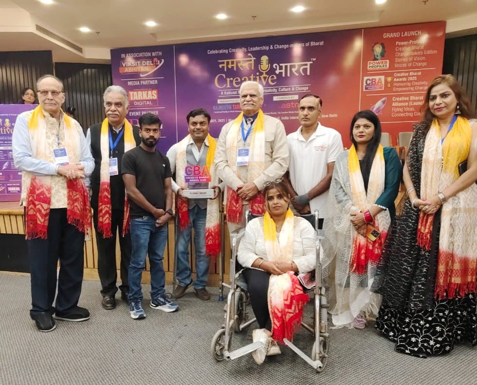 दिव्यांगों के लिए बेहतर कार्य करने पर ईगल स्पेशियली एबल्ड राइडर्स की राखी पांडेय, ललिता मांसिया, डॉ. आमिर सिद्दीकी, तेजपाल यादव और प्रशांत को तरकश डिजिटल द्वारा क्रिएटिव भारत अवार्ड 2025 से सम्मानित किया गया।