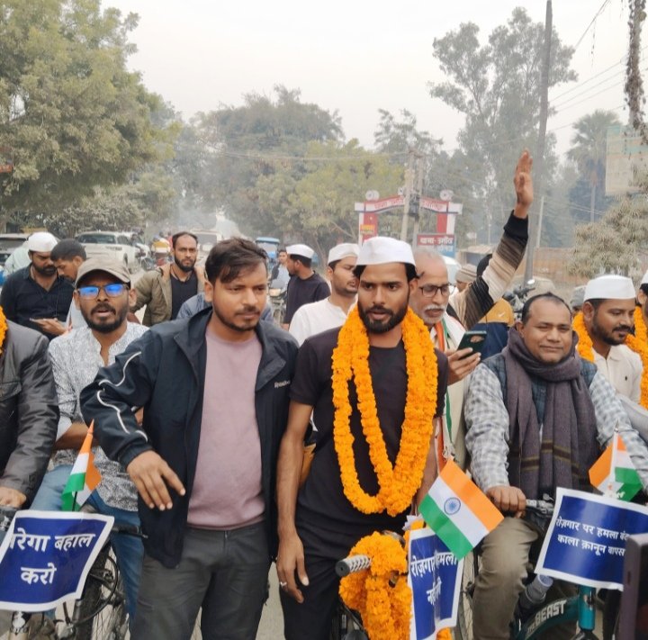 साइकिल से बेल्थरा रोड पहुँची ‘मनरेगा’ बचाओ यात्रा
