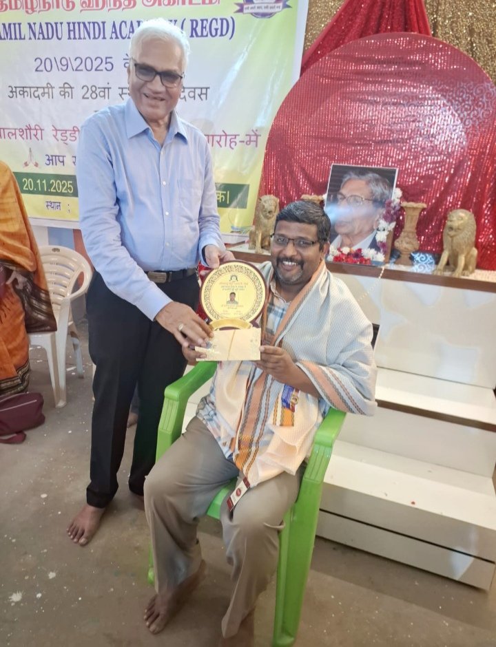 टी. नगर स्थित ठक्कर बापा विद्यालय के गांधी गैलरी हॉल में रविवार को हुए इस कार्यक्रम में मुख्य अतिथि डॉ. बीएल आच्छा रहे। इस अवसर पर डॉ. सतीश कुमार श्रीवास्तव और बाल साहित्य लेखिका रोचक अरण को शॉल, स्मृति चिह्न व नकद राशि प्रदान कर सम्मानित किया गया।