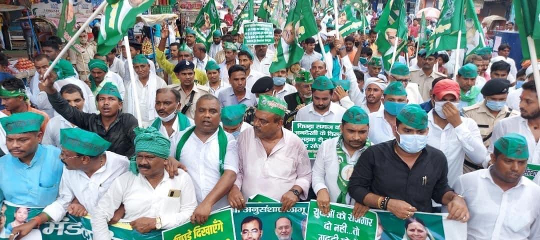मंडल दिवस Mandal Diwas के अवसर पर जातीय जनगणना Caste census की मांग को लेकर समाजवादी पार्टी Samajwadi Party एवं राष्ट्रीय जनता दल RJD ने उत्तर प्रदेश Uttar Pradesh एवं बिहार Bihar के जिला मुख्यालयों पर प्रदर्शन किया एवं राष्ट्रपति को ज्ञापन सौंपा। राजद के वरिष्ठ नेता एवं पूर्व उपमुख्यमंत्री तेजस्वी यादव की घोषणा के बाद पार्टी के कार्यकर्ताओं एवं पदाधिकारियों ने मंडल दिवस पर जातिगत जनगणना, आरक्षित कोटे की बैकलॉग रिक्तियों को भरने व मंडल कमीशनन की शेष अनुशंषाओं को लागू कराने की मांग को लेकर बिहार के सभी जिलों में प्रदर्शन किया। कार्यक्रम की सफलता पर तेजस्वी यादव ने अपने सभी कार्यकर्ताओं एवं पदाधिकारियों को बधाई दी।